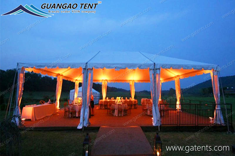 Las especificaciones de la carpa para bodas se estiman principalmente de acuerdo con el número de personas y los elementos de soporte internos.Las formas están diversificadas y hay varias carpas para bodas de estilo europeo.Lo más importante es que la carpa tiene una función de protección solar. Elija una carpa para bodas para experimentar fácilmente una boda al aire libre única.