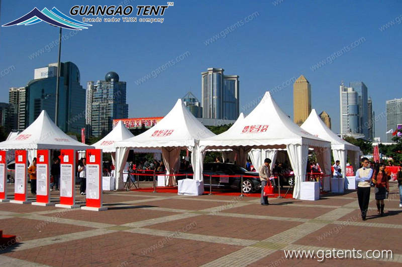 La carpa pagoda es un nuevo tipo de edificio temporal para actividades al aire libre. No solo contiene la forma de la carpa en forma de aguja y de cono, sino que también incluye una variedad de formas, como la parte superior de espiga y la parte superior curva. Las carpas pagoda son carpas económicas, las principales características son ligeras, de instalación más rápida que las carpas convencionales, más económicas y prácticas. Puede cumplir con los requisitos del cliente para el tamaño de la carpa con forma de cono. En particular, se selecciona la tela del toldo hecha de fibras sintéticas importadas y tres capas de materiales de PVC. La lona pesa entre 650 y 850 gramos por metro cuadrado, y su rendimiento cumple plenamente con los estándares europeos y estadounidenses.La parte del marco se procesa de manera exquisita y se maneja de acuerdo con los estándares de seguridad.