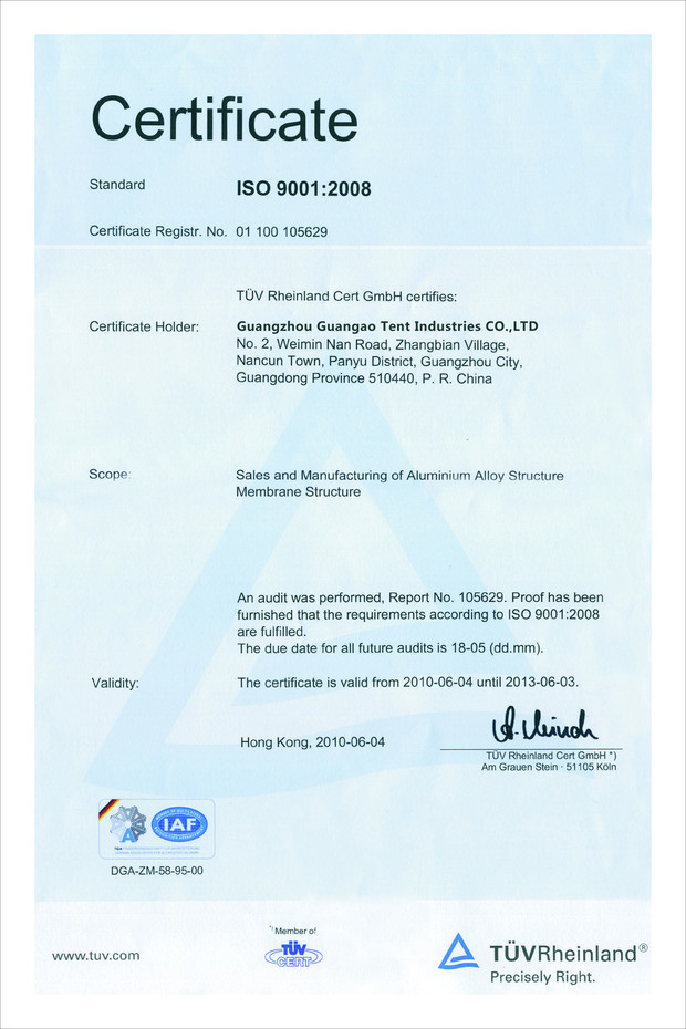 No sólo en la competencia deportiva a gran escala, una exposición general ,sino también en actividades en el mercado al aire libre, pueden ver la amplia tecnología y un excelente servicio de la tienda de campaña Guangao. La tienda de Guangao se encuentra actualmente en los menos del mercado que pueden ofrecer unos servicios completos de negocios de la casa de tienda, cuyos negocios involucran a muchos países de todo el mundo. Estamos guiados a las personas, pensamos en los demás,analzamos las necesidades , los pensamientos , la búsqueda de los clientes, proporcionamos las casas de tienda para personalización ,el diseño personal para satisfacerlos, y servicios de alquiler ,a que se minimicen los costos y se mejoren los ingresos por parte de clientes.